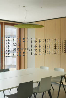 Insgesamt prägen reduzierte Farben, natürliche Materialien und bodentiefe Fenster die angenehme Atmosphäre im neuen Landratsamt. Die Lighting Pads R 900, die auch aufgrund ihrer haptisch angenehmen und warm wirkenden Vliesoberfläche ansprechend wirken, ermöglichen ein akustisch angenehmes Arbeiten in den Konferenzräumen – von der ersten bis zur dritten Etage.