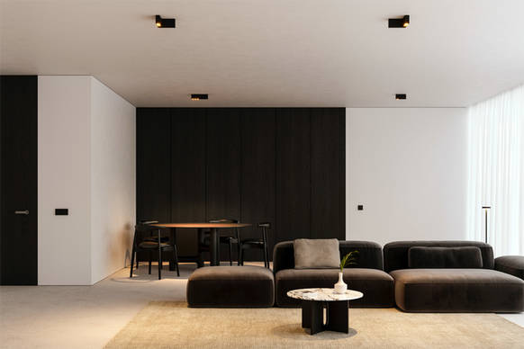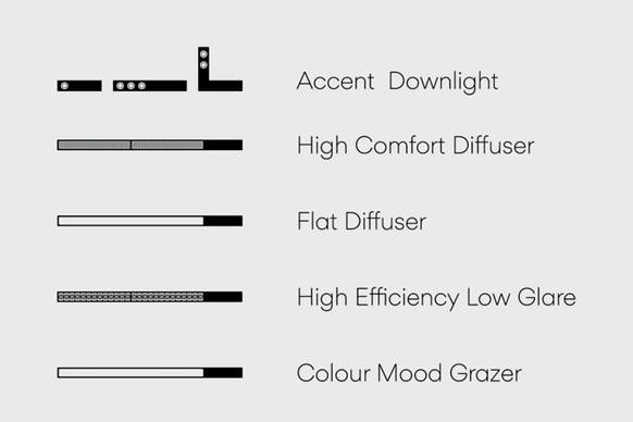 Der High Comfort Diffuser eignet sich besonders für Flure oder Korridore in Wohngebäuden und ist in verschiedenen Längen erhältlich. Er ist mit leistungsstarken LED-Streifen ausgestattet, die für eine diffuse, homogene Beleuchtung sorgen und eine angenehme, entspannte Atmosphäre schaffen. Das Accent Downlight ist ideal für Übergangsbereiche und optisch kompakt: Lichtpunkte lenken den Blick entspannt auf die beleuchtete Fläche.