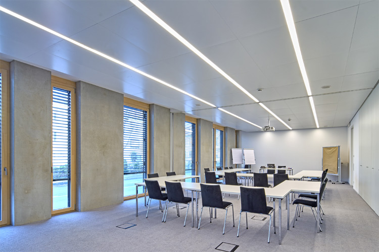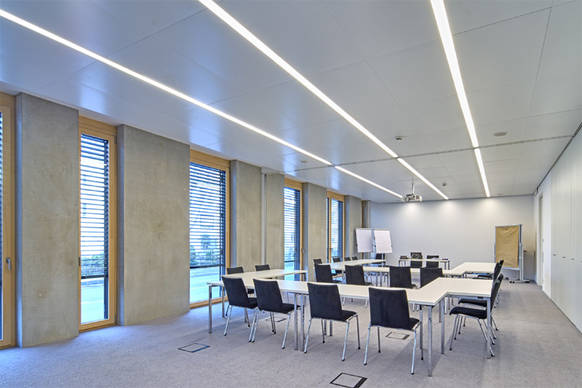 Der Einsatz von hocheffizienten LEDs kombiniert mit einer mikroprismatischen Abdeckung sorgen für eine optimale Bildschirmarbeitsplatzbeleuchtung (UGR < 19), die jeglichen Anforderungen gerecht wird. Alternativ kann hier als Abschlussmittel auch eine Variante mit opalem Diffusor gewählt werden. Das BREL Leuchtensystem kann in dimmbarer Ausführung (DALI), mit Notlicht oder auch mit Tageslichtsteuerung gefertigt werden. Hier bietet die Lindner Leuchtenfabrik fachgerechte Lichtberechnungen an, in denen die jeweiligen Arbeitsplatzanforderungen gemäß DIN EN 12464 berücksichtigt werden. Einen hohen Stellenwert hat dabei die harmonische Leuchtenaufteilung gekoppelt mit optimaler Effizienz im jeweiligen Raum.