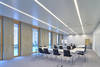 Neben den ästhetisch-visuellen Anforderungen übernimmt die Systemleuchte BREL auch eine tragende Funktion und ersetzt somit passgenau das Bandraster. Die Fertigung der Leuchten im eigenen Werk der Lindner Leuchtenfabrik erfolgt projektbezogen, sodass je nach Größe des Raums vielfältige Varianten und polygonale Anordnungen möglich sind.