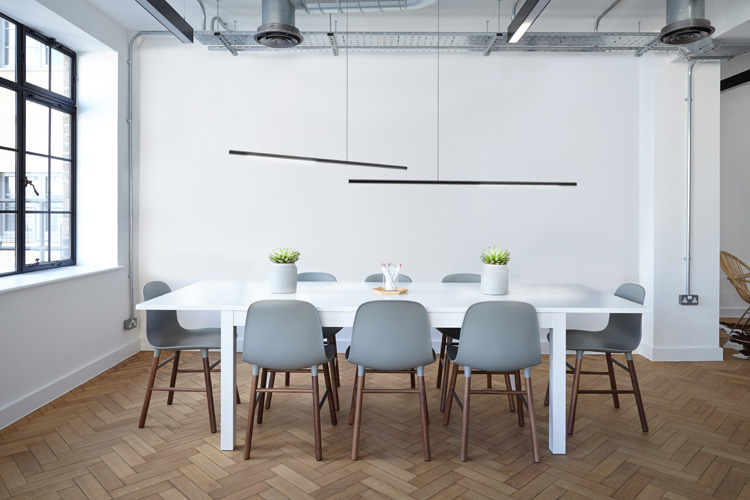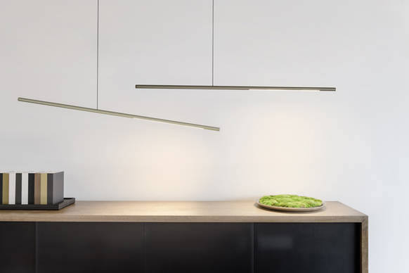 Asymmetrisch aufgehängt schwebt die stabförmige Leuchte waagerecht im Raum. Die schlanke Form verleiht Palito ein besonders elegantes Erscheinungsbild, auch wenn mehrere Leuchten kombiniert werden und spielerisch wie in einem Mobile interagieren.