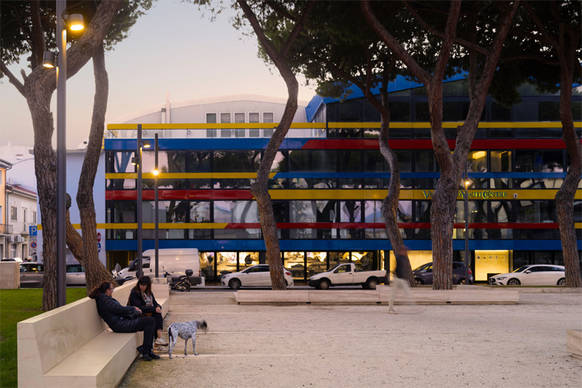 Über Jahre hinweg war die Piazza Lorenzo Viani von baulichem Verfall, geringer Aufenthaltsqualität und sozialer Marginalisierung geprägt. Die Neugestaltung des Platzes ist Teil eines umfassenderen Entwicklungsplans zur Aufwertung des Darsena genannten historisch gewachsenen Hafen- und Werftareals, das den wirtschaftlichen und maritimen Kern der Stadt bildet. Die Darsena umfasst mehrere Hafenbecken entlang des Canale Est. Sie ist traditionel geprägt als Standort bedeutender Werften für Luxusyachten, maritimer Industrie sowie angrenzenden Wohn- und Stadträumen. Als Ort mit hoher wirtschaftlicher Bedeutung, aber lange vernachlässigter Aufenthaltsqualität steht sie exemplarisch für den Wandel vieler innerstädtischer Hafenareale. Ziel der Intervention war es, die Piazza Lorenzo Viani im Rahmen dieses Transformationsprozesses tagsüber und in den Abendstunden wieder als sicheren, lebendigen und identitätsstiftenden Ort zu etablieren.