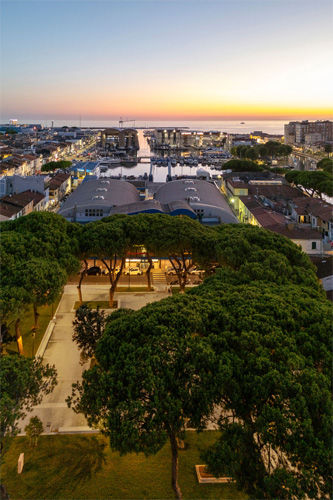 Die von ewo beleuchtete Piazza befindet sich in unmittelbarer Nähe des Hafens und des Canale Est, eingebettet in ein Areal mit international bedeutenden Werften, vor allem für den Bau von Luxusyachten. Die Neugestaltung des Platzes, inklusive des mit den ewo Chameleon-Scheinwerfern realisierten Lichtkonzeptes, ist Teil eines umfassenden Transformationsprozesses, der darauf abzielt, diesen stadträumlich und wirtschaftlich wichtigen Bereich wieder als attraktiven, sicheren und lebendigen Ort für die Öffentlichkeit zu etablieren.