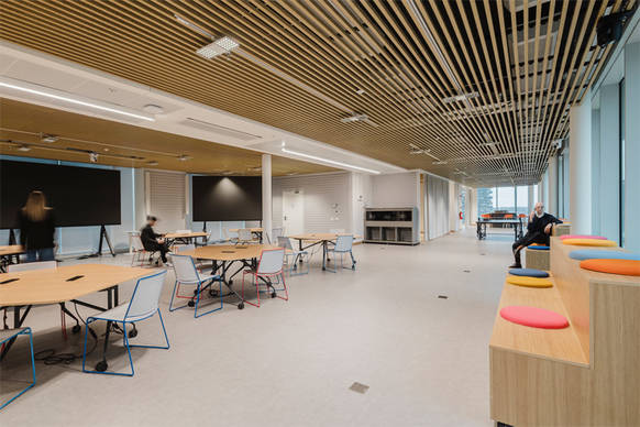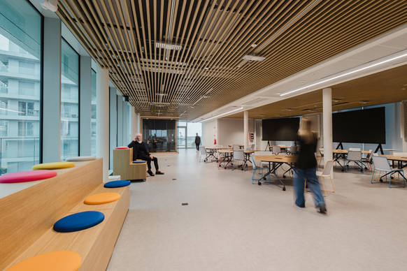 „Die oberste Priorität war es, Anpassungsfähigkeit, Leistungsfähigkeit und langfristigen Wert zu gewährleisten“, fährt sie fort. „Das Konzept konzentrierte sich auf die Schaffung einer robusten Infrastruktur, die verschiedene Raumaufteilungsvarianten ermöglicht und gleichzeitig Sehkomfort, Energieeffizienz sowie architektonische Kohärenz gewährleistet.“