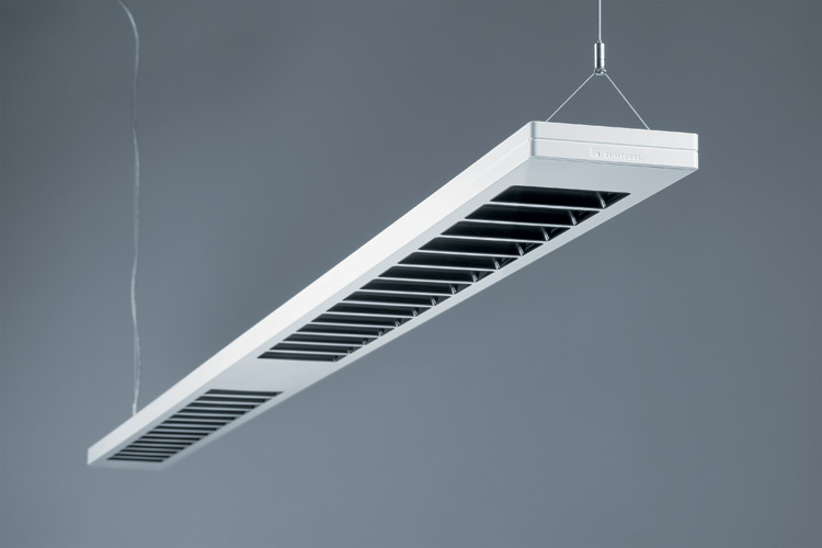 Das auffallendste Attribut von LINETIK ist die formale Zurückhaltung: Der Querschnitt des Korpus setzt mit gerade einmal 25 mal 25 Millimetern auf ein absolut schlankes Profil. Mit seiner eindrucksvollen Länge hingegen scheint der schlanke Lichtstab physikalische Gesetze außer Kraft zu setzen. Die von Zumtobel gemeinsam mit Simon Fisher und Matt Free von F Mark Ltd sowie Luke Smith-Wightman entwickelte Büroleuchte ist kompromisslos. Maximaler Lichtkomfort trifft in Bezug auf Material- und Ressourcen-Einsatz auf asketischen Minimalismus. Zwei Ausführungen bringen die elegante Linie in die Schwebe: Die Pendelleuchte macht die Lichtquelle über der Arbeitsfläche nahezu unsichtbar; die Stehleuchte mit ihrem weit herausragenden Leuchtenarm steht wie ein orthogonaler Winkel dezent im Raum.