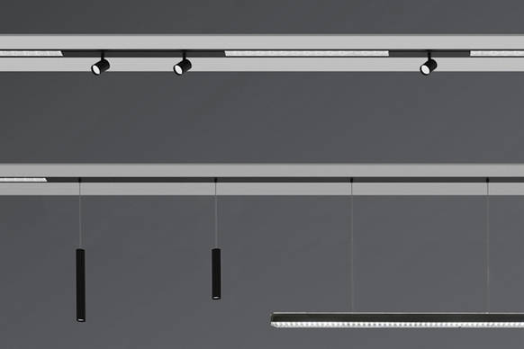 Licht- und Elektroplaner, Architekten und Innenarchitekten profitieren von der gestalterischen Bandbreite. Das System ist in 64 RAL-Farben erhältlich und integriert auch Einzel- und Doppel-Strahler, Pendelleuchten in zwei Baulängen, die filigrane Lichtwerk-Leuchte klir oder Stromschieneneinsätze mit DALI-Komptabilität formal stimmig in eine durchgehende Lichtstruktur. So entstehen ruhige Deckenbilder mit funktionaler Tiefe und hoher gestalterischer Qualität.