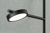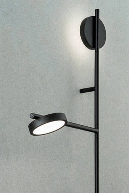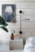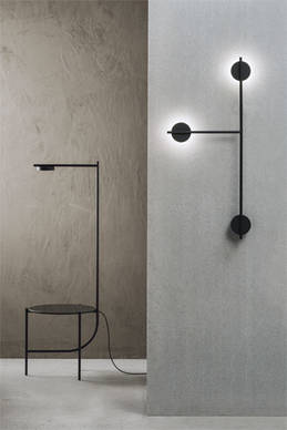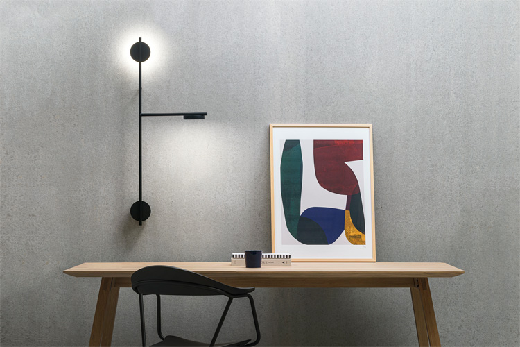 Eine perfekte Balance bilden die geraden, im 90 Grad-Winkel ausgerichteten Arme kombiniert mit zwei runden Leuchtschirmen im oberen Bereich und der Basis unten, die der Leuchte einen festen Halt an der Wand gewährt. Wie ein Wandobjekt anmutend, wird die IGRAM Wandleuchte praktisch unsichtbar durch Funktionalität ergänzt. Sowohl der horizontale Leuchtenarm als auch die Leuchtenköpfe sind um 180 Grad drehbar.