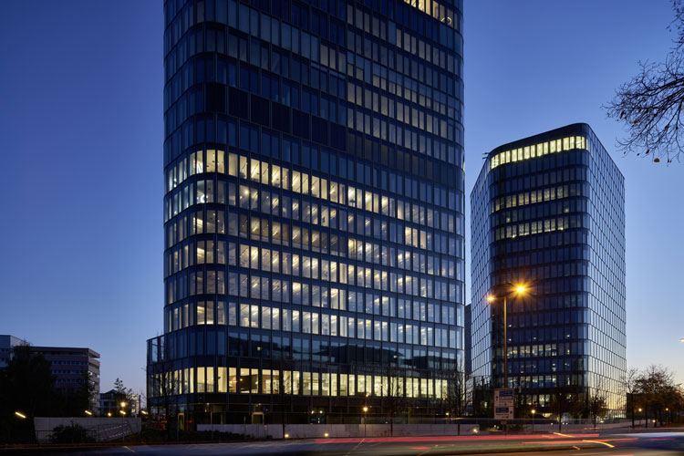 Die Flexibilität in der Lichtgestaltung wird vor allem durch ein Schienensystem erreicht, das einerseits mit dem trapezförmigen Grundriss des Gebäudes harmoniert und gleichzeitig auf die besonderen Anforderungen und Gegebenheiten reagiert. Entstanden ist ein stringentes Schienenraster, das sich vom Mittelpunkt des Towers aus strahlenförmig in den einzelnen Geschossen verteilt. Das flexible Beleuchtungskonzept erstreckt sich über die gesamte Fläche von 9.000 qm und wird vor allem durch die Leuchtenserien Mito, Mito linear und Più abgebildet. Den strengen Budgetvorgaben konnte durch intelligente Lichtgestaltung begegnet werden.
