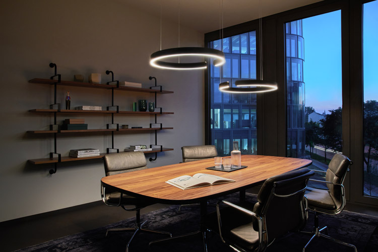 Mit der verstellbaren Pendelhöhe kann diese Zone allen Eventualitäten entsprechen. Schnell kann man die einzelnen Leuchten auf die gewünschte Höhen bringen und genießt größtmöglichen Gestaltungsspielraum während »color tune« das situative Einstellen der Farbtemperatur des Lichts ermöglicht.
