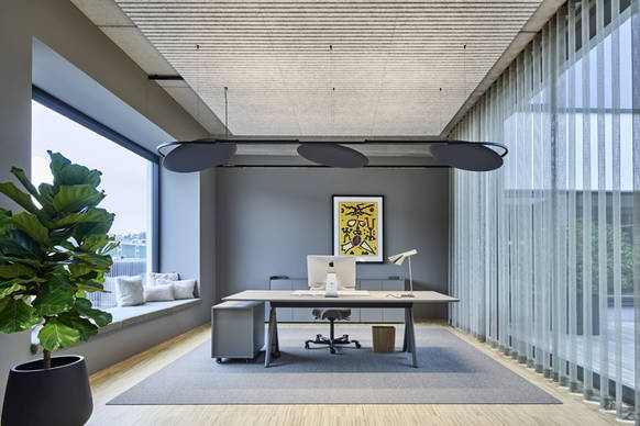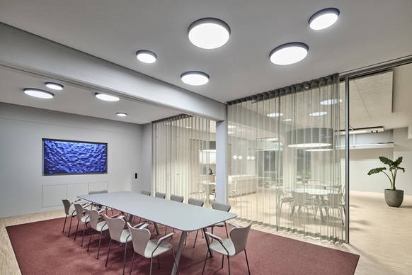 In entscheidungsrelevanten Bereichen wie Geschäftsführungsbüros und Konferenzräumen kommen Leuchten mit Natural Light-Technologie (NLT) zum Einsatz. Aufgrund eines bewusst erhöhten Farbwiedergabewert von CRI > 98 – etwa in Soliscape sowie in Shiftline- und Splitline-Systemen – erscheinen Materialien, Texturen und Oberflächen besonders natürlich. Das ist vor allem dort entscheidend, wo neue Materialen oder Muster beurteilt werden. Alle Systeme basieren zudem auf moderner LED-Technologie und gewährleisten eine energieeffiziente, nachhaltige und wartungsarme Beleuchtung.