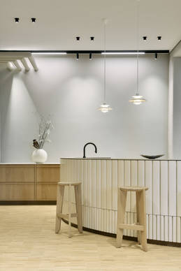 „Wir haben bewusst auf eine klare, zurückhaltende Leuchtenintegration gesetzt, die das Architektur- und Interior-Design ergänzt, ohne es zu überlagern“, erläutert Simon Winkelnkemper, „das Licht soll die Marke Blomus spürbar machen.“