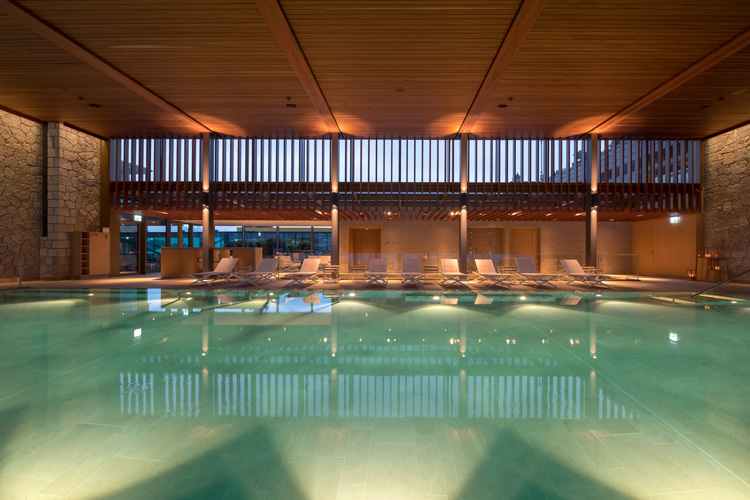 Auf drei Ebenen mit insgesamt 7.000 m² lädt das Alpine Spa zum exklusiven Entspannen in Indoor- und Außenpools, verschiedenen Saunen, Kalt- und Warmbecken, einem Raum der Stille und Ruheräumen, privaten Spa-Suiten und individuellen Behandlungsräumen, einem Fitnessbereich sowie einem Restaurant ein.