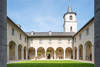 Neben den abwechslungsreichen Ausstellungsbereichen im Innenraum des Museums, sind auch die Außenanlagen äußerst sehens- und besuchenswert. Der Klostergarten mit seinem umlaufenden, überdachten Kreuzgang bietet einen malerischen Ort für Veranstaltungen oder Aktivitäten unter freiem Himmel. Bei Einbruch der Dämmerung beleuchten Strahler den Innenhof und die Fassade und unterstreichen damit den Charakter des denkmalgeschützten Gebäudes in seiner massiven Anmutung. Der Kreuzgang wird von Downlights beleuchtet, die jeweils diskret im Schlussstein jedes Gewölbes platziert sind. Hierfür wurden koordiniert mit der Architektur minimale Kernbohrungen in den historischen Schlusssteinen verortet. Die Besonderheit ist dabei, dass die Vorschaltgeräte aus Platzmangel ausgelagert wurden und sich im Bodenhorizont im darüberliegenden Geschoss befinden, wo sie über Bodenklappen zur Wartung erreicht werden können.