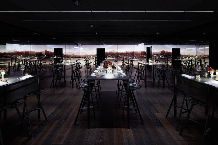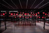 Als zweites System wurde, unter Zugrundelegung unterschiedlicher Bestuhlungsvarianten, ein Layout aus LED-Mini-Downlights entwickelt und zurückhaltend in die Deckenkassetten integriert. So können diverse Szenarien, z.B. Gruppierungen mit verschieden großen Tischen sowie eine Seminarbestuhlung, punktgenau beleuchtet werden.