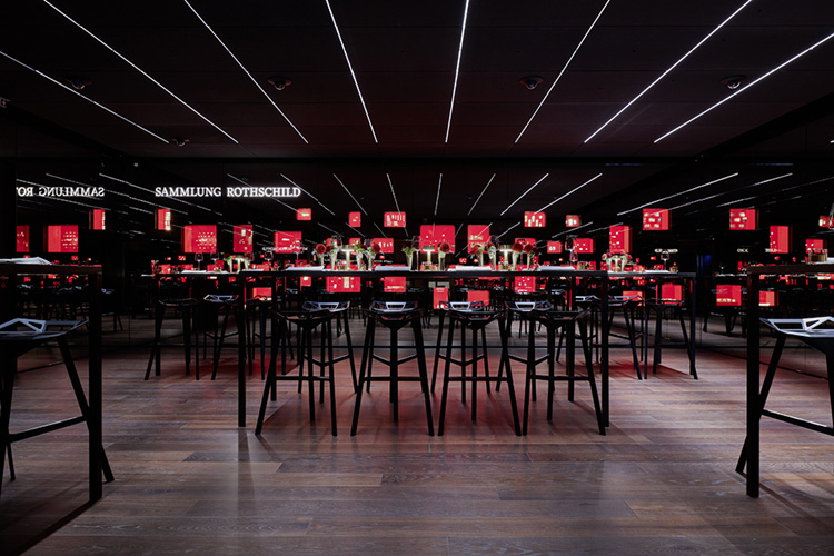 Durch die reflektierenden Wände erlebt der Besucher die projizierten Medieninhalte gespiegelt, vervielfältigt; er hat teilweise das Gefühl, sich inmitten der Medieninszenierung zu befinden. Eine nahezu schwarze Metalldecke und ein dunkler Boden bieten ruhige Hintergründe für die volle Entfaltung der dynamischen, größtenteils goldfarbenen Medieninhalte, die speziell zum Thema Gold, Goldvorkommen, Gewinnung usw. generiert wurden. Der Rothschildraum kann angemietet werden als Veranstaltungsraum, für Konferenzen und Events mit einer maximalen Belegung von 40 Personen.