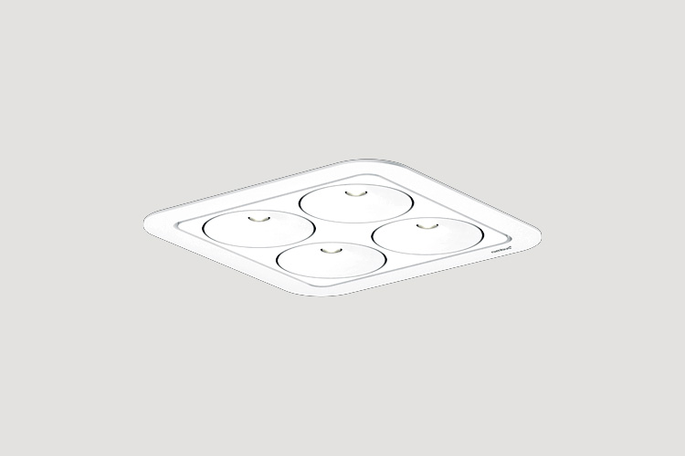 Mit Q Four IN wird die hohe Kunst in der Lichtplanung verwirklicht: der Leuchtenkörper verschwindet bündig in der Decke und gibt ebenfalls brillantes, gerichtetes Licht. Es geht einzig und allein um die Lichtatmosphäre, um die Wirkung des Lichts in Raum. „Licht aus dem Off“, lautet der von Nimbus geprägte Begriff für diesen speziellen Effekt, dass die Lichtquelle annähernd unsichtbar ist und sich das Licht allein auf der Beleuchtungsebene entfaltet. Wie bei allen Q Four Familienmitgliedern, werden auch bei der Q Four IN die hochwertigen LFO-Linsen von Bartenbach eingesetzt, sie sind zusammen mit der edel-minimalistischen Formensprache und Detailpräzision ein Gütesiegel der neuen Nimbus Leuchten. Wer sich trotz des flächenbündigen Einbaus einen Akzent beziehungsweise ein starkes grafisches Element an der Decke wünscht, kann sich – als Alternative zu Mattweiß – für den Leuchtenkörper in Mattschwarz entscheiden.