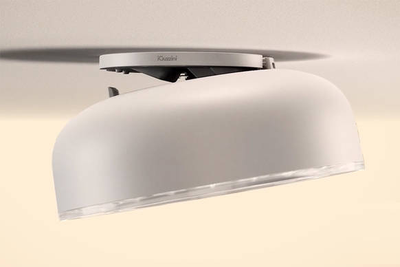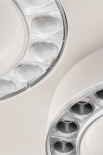 Entlang der kreisförmigen Krone strahlt die miniaturisierte Opti Diamond Optik weiches, gleichmäßiges Licht aus. Diese patentierte Technologie erzeugt den Space-Effekt und bietet Brillanz, Sehkomfort und hohe Effizienz sowohl im Innen- als auch im Außenbereich. Erhältlich in Weiß transparent oder Schwarz transparent, in flächenbündigen und gerahmten Versionen, behält es auch im ausgeschalteten Zustand ein unverwechselbares Aussehen.
