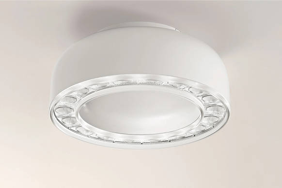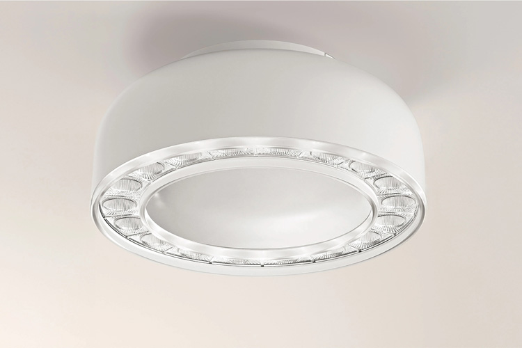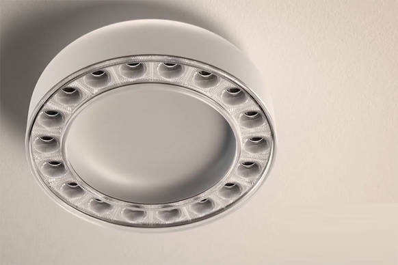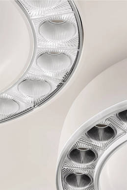 Die Lens-Optik erweitert die Anwendungsmöglichkeiten von Ribeira. Die No Dot-Variante, die in der Rahmenversion erhältlich ist, erzeugt einen durchgehenden Lichtring – ideal für die Gastronomie und Wohnbereiche – und kombiniert visuellen Komfort mit hoher Leistung.