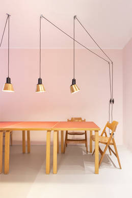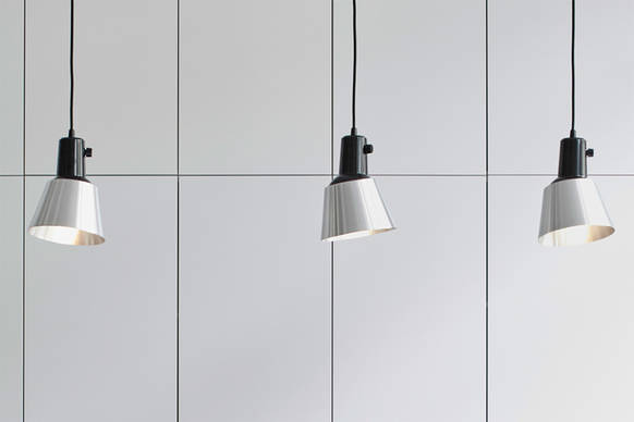 Gefertigt wird der Schirm der K831 heute – genau wie alle anderen Midgard-Leuchten – in sorgsamer Handarbeit: Dabei wird wahlweise Stahl, Aluminium oder Kupfer auf klassische Weise von Hand gedrückt. Die Aluversion wird anschließend optional farbig pulverbeschichtet und die Stahlschirme werden in fünf Farben emailliert (Perlweiß, Blassgrün, Betongrau, Schwarz oder Anthrazit, innen jeweils Weiß).