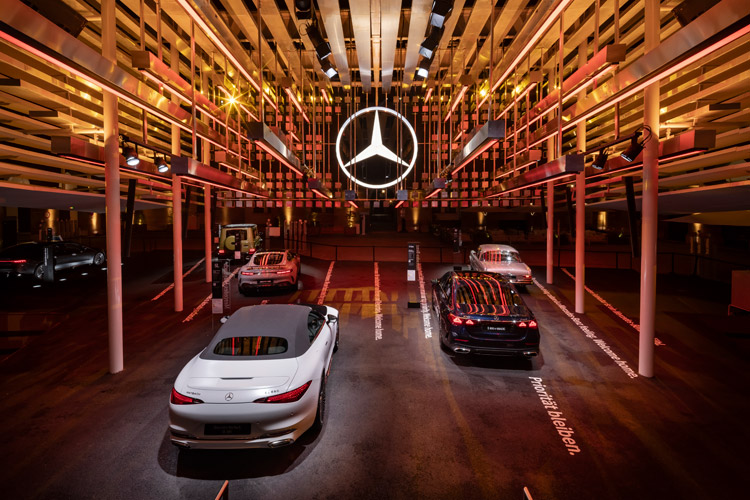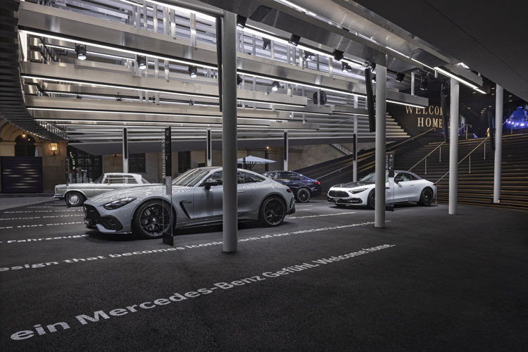 Der gesamte Auftritt war in eine aufwendig gestaltete Lichtarchitektur eingebettet, deren Zentrum eine überdimensionale Nachbildung des ikonischen Kühlergrills des neuen Mercedes-Benz GLC bildete. Der Weg durch diese Installation führte die Gäste in einen immersiven Innenraum, in dem historische, aktuelle und erstmals gezeigte Modelle jeweils eine eigene Lichtdramaturgie erhielten. Die ROXX Scheinwerfer unterstützten diese Szenografie wirkungsvoll und trugen zur charakteristischen Bildsprache der Marke bei.