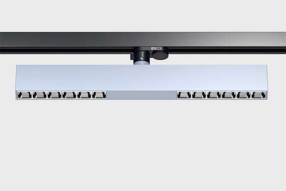 Mit ihrer großen Auswahl an Lichtverteilungen decken Compar linear Stromschienen-Downlights viele Anwendungen in Büros, Verwaltungen und öffentlichen Gebäuden ab – überall, wo Stromschienen geplant oder bereits vorhanden sind, von der effizienten Grundbeleuchtung mit weiten Leuchtenabständen bis zur ergonomischen Arbeitsplatzbeleuchtung mit UGR<19. Die engeren Lichtverteilungen spot, flood und oval flood sind mit Hochleistungs-LEDs bestückt. Bei den breiteren Lichtverteilungen wide flood, extra wide flood und oval wide flood setzt ERCO jetzt COB-LEDs in zwei Leistungsstufen ein und erreicht so einen ausgesprochen hohen Output von bis zu 130 lm/W. Diese effiziente Verbindung aus weiten Leuchtenabständen und geringem Energieverbrauch macht Lichtkonzepte sowohl in Anschaffung als auch im Betrieb höchst profitabel.