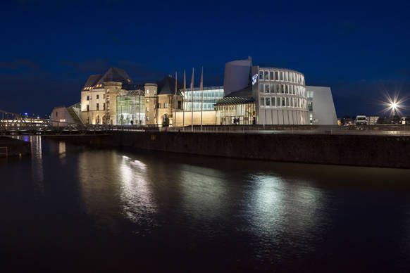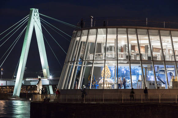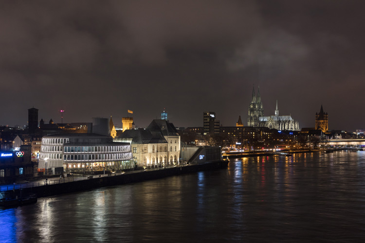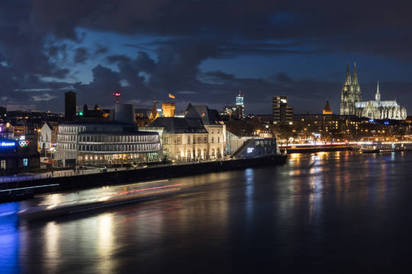 Anlässlich des 25-jährigen Jubiläums des Schokoladenmuseums sollte die frühere, mit ihren lauten, blauen Farbakzenten auffällige Außenillumination an allen Fassadenseiten durch eine moderne, energiesparende und leise LED-Beleuchtung ersetzt werden. Dabei sollte das an besonders prominenter Stelle verortete, vom gegenüberliegenden Rheinufer und den Brücken weithin sichtbare Ensemble unter Rücksicht auf den städtebaulichen Kontext mittels weniger Eingriffe ein markantes neues Erscheinungsbild erhalten.