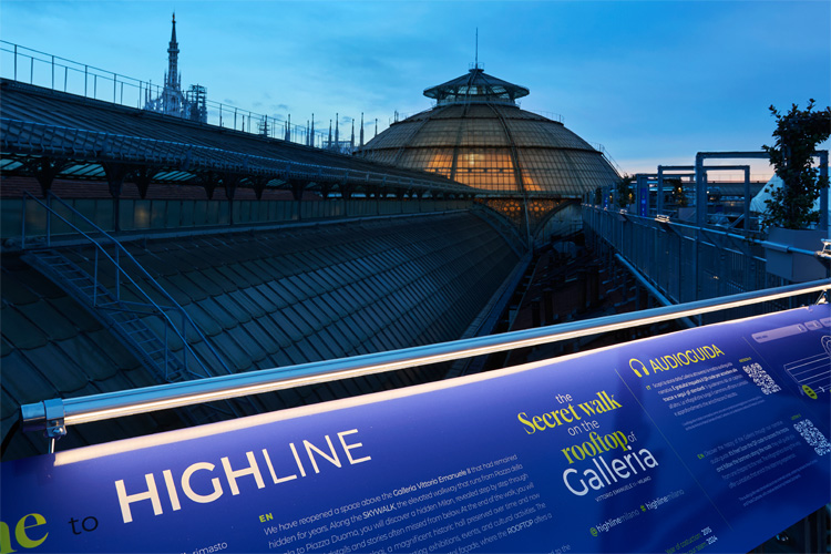 HIGHLINE Milane ist ein innovatives Kulturzentrum über den Dächern der Galleria Vittorio Emanuele 11, das auf den Werten der neuen Generationen sowie auf Territorialität und Nachhaltigkeit basiert. Das Sanierungsprojekt wird von Duomo 21 S.r.l. gefördert, dem Gewinner der kommunalen Ausschreibung, die diese Wiedereröffnung ermöglicht hat. Geleitet wird es von einem jungen und dynamischen Team, bestehend aus Matteo Occhipinti und Franck Pascal (Leiter von HIGHLINE), Camilla Rivieri (Geschäftsführerin) sowie Flavio Di Renzo (künstlerischer Leiter und Kurator). Gemeinsam haben sie einen der symbolträchtigsten Orte Mailands in einen Raum für Kunst, Geschichte und Inklusion verwandelt, der den neuen Generationen das kulturelle Erbe näherbringt.