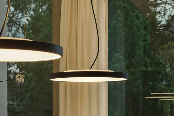 Eine homogen leuchtende Scheibe - prägnanter kann eine Formensprache kaum sein. Mit dem Design der kreisförmigen SLICE² PI hat serien.lighting eine eigenständige und lichttechnisch anspruchsvolle Interpretation eines Archetyps geschaffen. Zur Light+Building 2026 wird die Deckenleuchte um eine größere XXL-Version, eine Wandleuchte sowie eine ebenso reduzierte Pendelleuchte ergänzt. Die sehr geringe Aufbauhöhe von nur 30 mm ist bei allen Leuchten gleich und bildet die visuelle Klammer. Varianz entsteht durch die verschiedenen Durchmesser, Farben und alternative Möglichkeiten, die neue Pendelleuchte mit Seil, Rohr oder Kabel an unterschiedliche Deckenhöhen anzupassen.