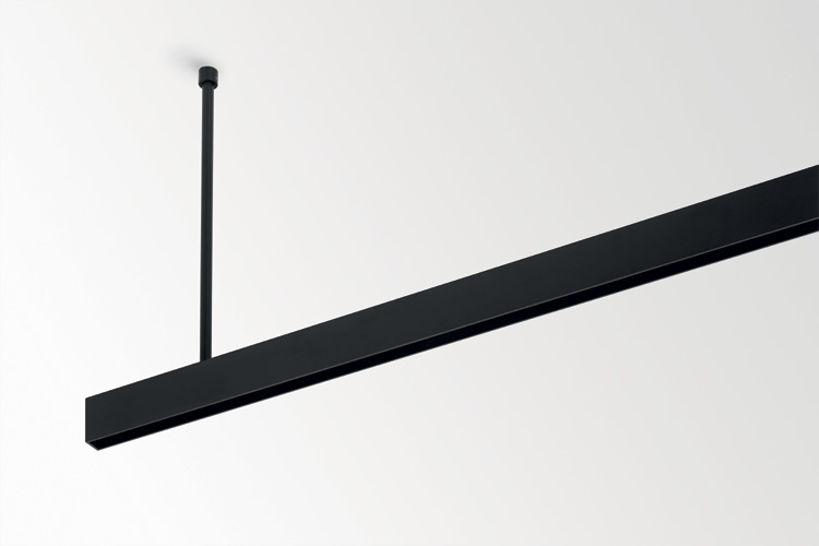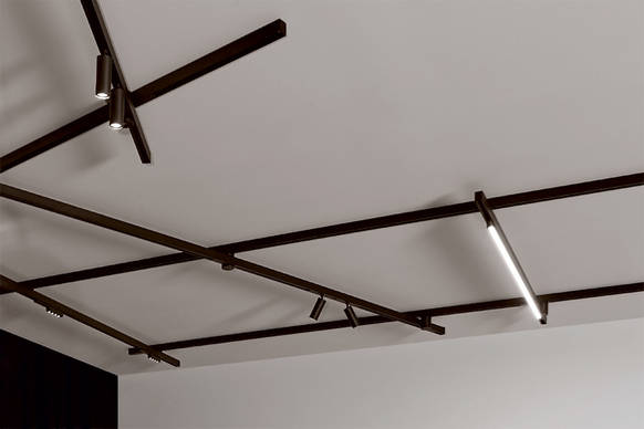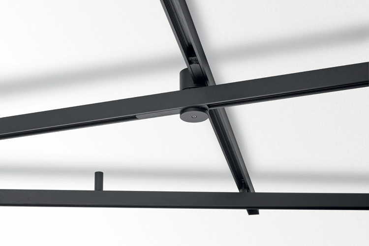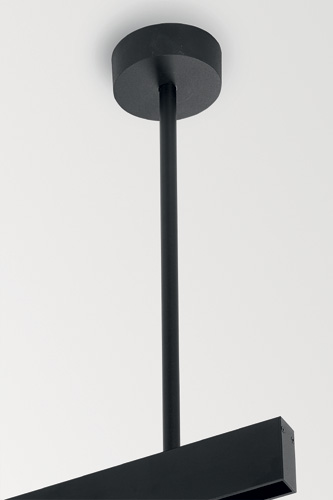Die 2P-Verbinder, welche die elektrische Verbindung zwischen zwei Matrix-Profilen herstellen, brechen deren strenge Geradlinigkeit mit ihrer zylindrischen Form auf. In optional goldfarbener Ausführung stellen sie gar ein dekoratives Element. Zur Bildung einer zweiten Profilebene gibt es ein tragfähiges Verbindungsteil und bei der Montage kann man zwischen Deckennähe und Deckenabstand wählen. Für die zweite Option steht eine Abhängelösung mit oder ohne elektrischem Anschluss zur Verfügung.