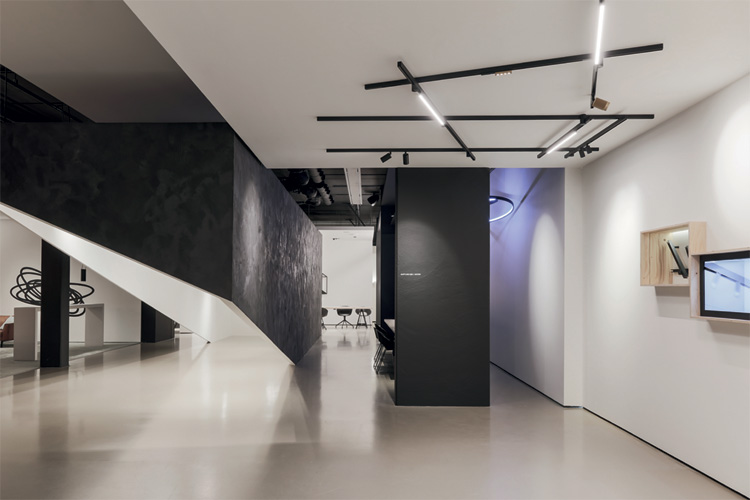 Bei Matrix ist der Name Programm. Denn mit dem System lassen sich die Profile – direkt an der Decke oder abgependelt – nicht nur linear, sondern zu unterschiedlichsten strukturgebenden Winkelkombinationen koppeln. Und dies sogar in zwei Raumschichten. Dabei profitiert der Raum nicht nur von der ästhetischen Intervention einer Deckengestaltung, sondern auch von einer Gliederung mittels verschiedener Beleuchtungsatmosphären.
