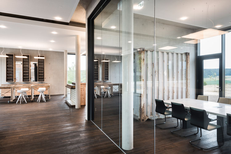 Auch der Auftraggeber Andy Wolf war in die Entscheidungsfindung eingebunden und kann sich mit der Firmenphilosophie von Nimbus sehr gut identifizieren: „Die hohe Qualität und Fertigung der einzelnen Produkte spielt auch bei der Produktion von Andy Wolf eine sehr große Rolle.“ Der Architekt Christoph Kaspar zeigt sich zufrieden mit dem Gesamtergebnis: „Die Architektur entspricht den funktionalen Anforderungen der Brillenmanufaktur, repräsentiert ein selbstbewusstes Unternehmen und wurde zum Element der Corporate Identity. Und das wird spürbar von den Nutzern gelebt.“