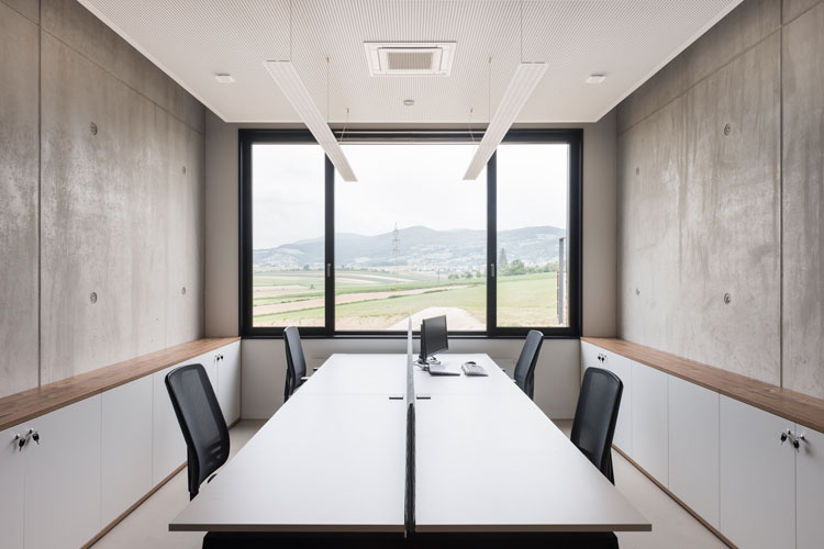 In Zusammenarbeit mit Lichtplaner Daniel Jokesch von Ökoplan Energiedienstleistungen (Hartberg) entschied sich Architekt Christoph Kaspar für quadratische und lineare Nimbus-Leuchten, die zum Teil in die Decken integriert sind. Zum Einsatz kamen die Nimbus Module L 196 und Q 36 TT sowie Q 36 in den Büros, Gängen und im Showroom. Den Showroom und die Besprechungsräume erhellen zudem die Module Q Project 900 und Q Project 600, Letzteres auch in der Variation als Pendelleuchte.