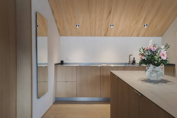Das Ergebnis der fruchtbaren Kooperation von Bauherren, ARCHILUM und Deltalight ist ein Licht, das Räume mit viel Feingefühl inszeniert – mal sanft gedämpft, mal punktuell akzentuiert. Es unterstreicht die architektonischen Linien, hebt die Wärme und Natürlichkeit des Werkstoffs Holz hervor und verleiht dem Badehaus jene sinnliche Ruhe, die es zu einem besonderen Ort macht. Große Glasflächen und Oberlichter holen das Tageslicht tief in die Räume und verbinden Innen- und Außenraum zu einer stimmigen Einheit.