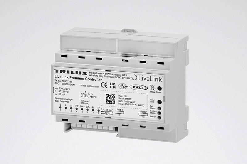Neu im Portfolio: die individuelle Steuerung von Licht in Multifunktionsräumen, eine IT-Schnittstelle zur Übergabe von Leuchten- und Sensordaten an übergeordnete Systeme, eine Notlichtprüfung ohne Cloud-Anbindung sowie vorauslaufendes Licht als DALI-Version. Praktisch für alle, die LiveLink ONE bereits nutzen: Das Software-Update erfolgt automatisch, ein erneuter Download ist nicht erforderlich. Die technische Basis der neuen Funktionen bildet der LiveLink Premium Controller.