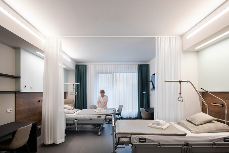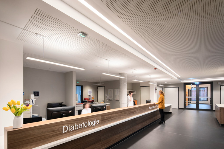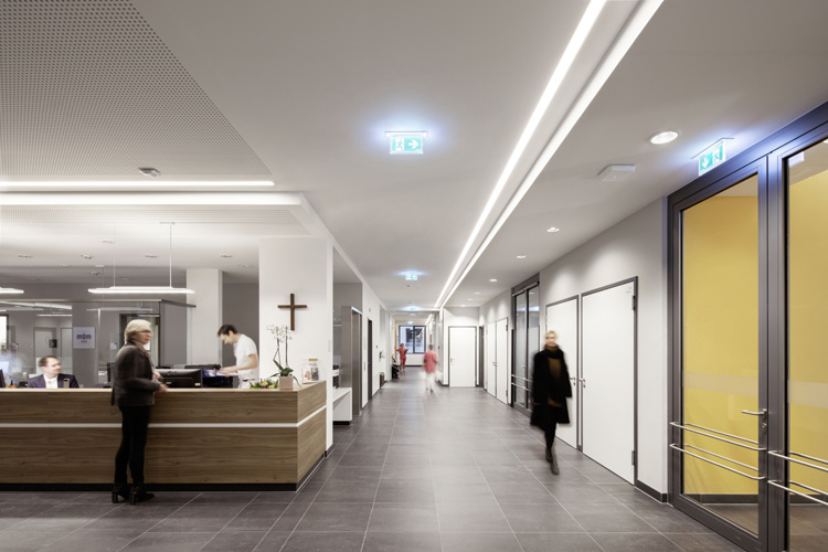 Für Ärzte und Patienten ist der Neubau – das „Haus 100“ – exakt zugeschnitten auf die Bedürfnisse. Ein Wohlfühl- und Arbeitsort zugleich. „Das KEH profitiert von unserer Komplettlösung und der modernen Lichtsteuerung, alles passt zusammen und greift ineinander“, erklärt Claudia Siebert, Vertriebsbeauftragte bei Zumtobel. „Die Beleuchtung ist professionell, anwenderfreundlich und modern. Zudem reduziert sie die Kosten für Betrieb, Wartung und Energie.“