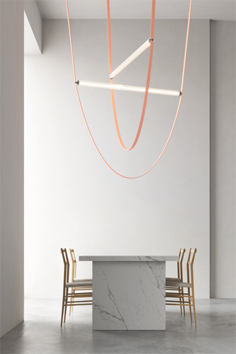 Bereits im Jahr 2017 hat Formafantasma mit WireRing eine skulpturale Wandleuchte gestaltet, die ein Muster an minimalistischer Formgestaltung darstellt. „Mit WireLine, unserer zweiten Leuchte für FLOS, haben wir das Prinzip der WireRing wieder aufgegriffen und einen Schritt weitergeführt“, so Andrea Trimarchi und Simone Farresin. „Beide Leuchten entstanden aus dem Wunsch, das elektrische Kabel als charakteristisches Designelement zu verwenden.“
