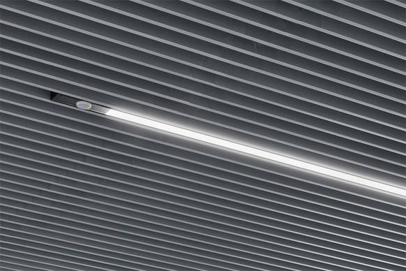 Damit sich das Licht an die jeweilige Tagessituation anpasst, messen Sensoren den Lichteinfall ins Gebäude. So kann Continental auf lange Sicht Energie einsparen und einen Beitrag zur Nachhaltigkeit der Firmenzentrale leisten. Mit der Entwicklung der Lichtline SUPERSYSTEM inline hat Zumtobel die Sensorik-Integration in das Smart Building System für unterschiedlichste Anwendungen ermöglicht. Durch die Kombination von Licht, Sensorik und Gebäudemanagementsoftware werden die Abläufe im Unternehmensgebäude, ganz im Sinne des Internet of Things (IoT), transparent abgebildet und optimiert